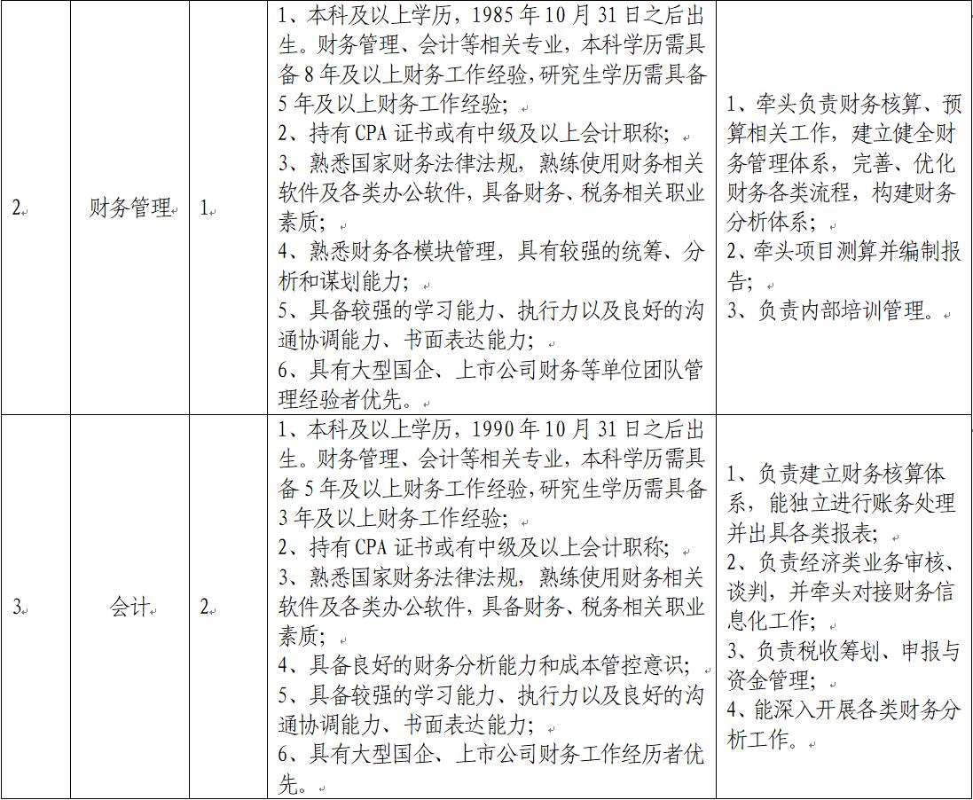 具体岗位及对应招聘人数、任职要求、岗位职责详情见下表。
