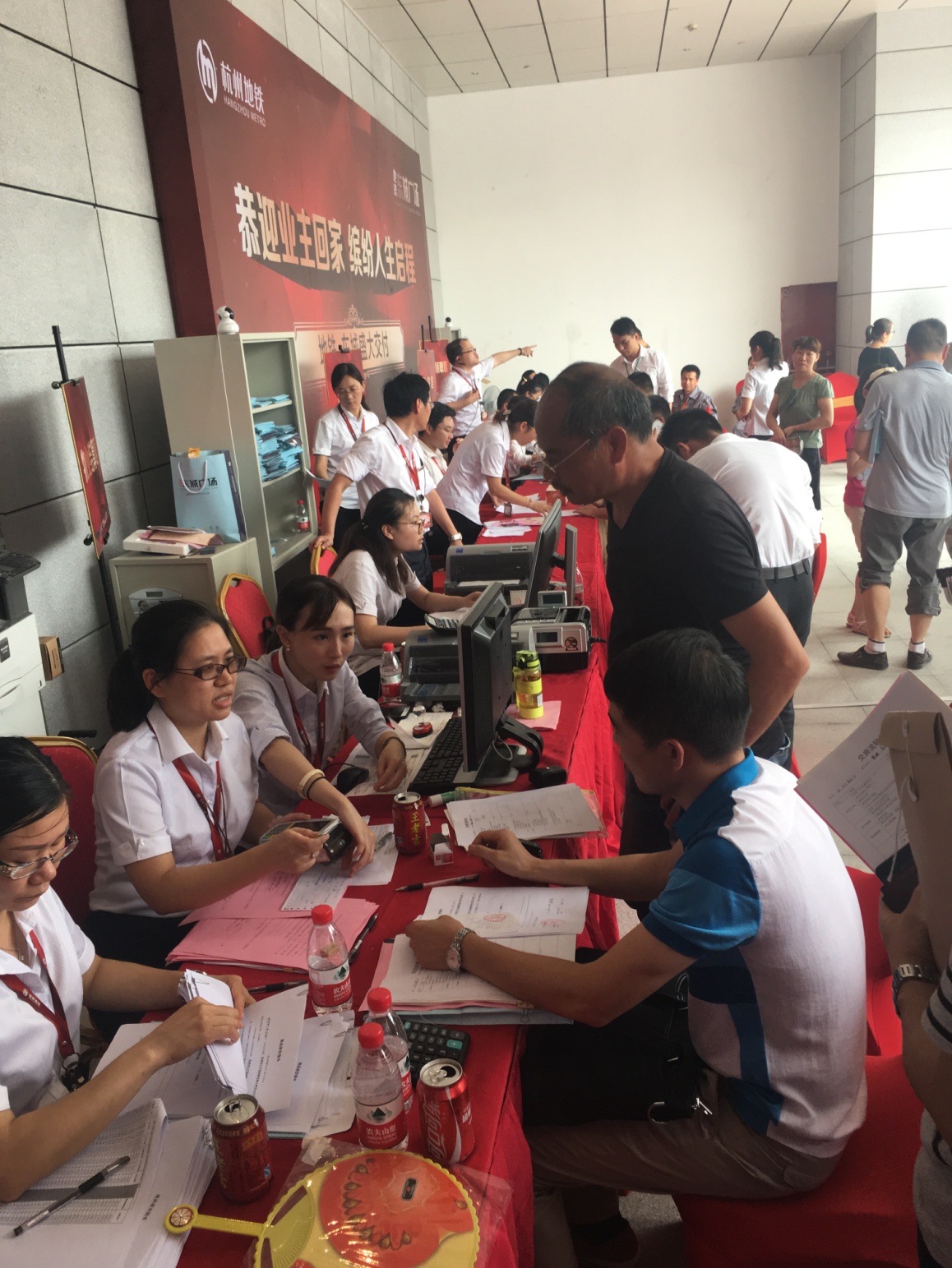 由于交付现场为临时场地,又时值酷暑,为了给客户提供快捷便利的交房手续,置业公司特意为客户准备了各种解暑解渴物品。在交房流程、交房细节及现场布置等方面都做了精心的准备,对每一个岗位的职责做了科学严谨的分工,交房流程每个环节均安排了工作人员。