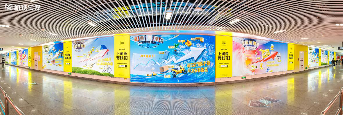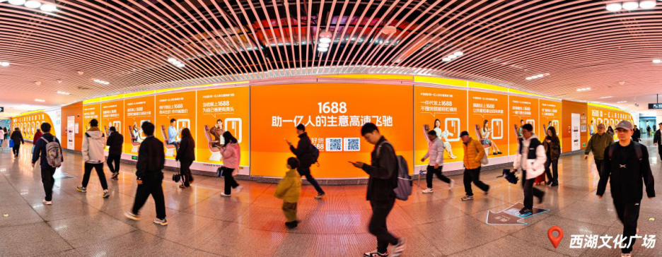 作为杭州地铁1/3/19号线三线换乘枢纽,西湖文化广场站凭借全线网第一的日均客流量及文旅商复合业态优势,始终占据城市品牌形象展示的核心窗口地位。2025年年初,杭铁传媒完成该站点换乘通道改造升级工程,着力打造杭州传媒的首个沉浸式场景营销热点——“城市炫影长廊”。