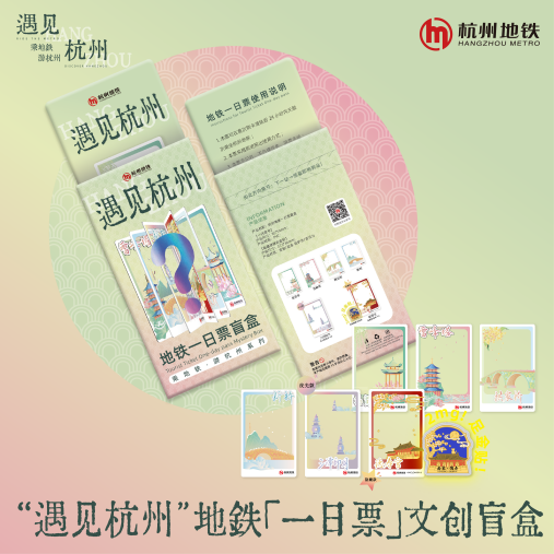 2025年5月1日,杭州地铁商业经营管理有限公司与曼卡龙联合打造的“遇见杭州”一日票文创盲盒正式发布了。该产品作为杭州地铁首次推出的旅游票卡特别款,其深度融合了杭州城市文化元素与现代设计理念,也是推动杭铁文创产业的创新实践。