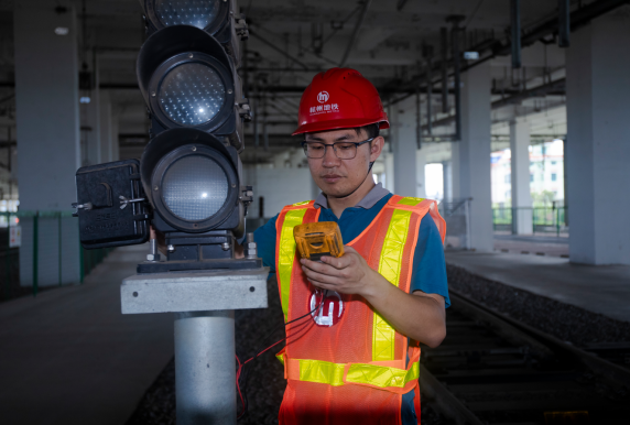 信号工程师郭鹏宇的夏天,是在热浪蒸腾的露天轨道与密不透风的设备房之间度过的。设备房内,他紧盯监测屏,烈日下,他一次次带领团队俯身检查转辙机密封,加固露天GPS支架,反复测量温度、检验绝缘性能,杜绝高温过载隐患。