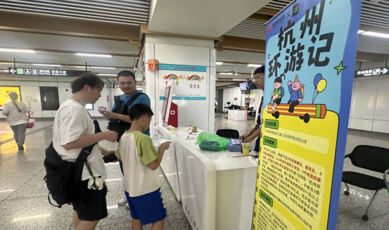 活动向乘客发放纸质“杭州环游手册”,乘客可凭手册至18个指定地点打卡盖章(2条路线,每条路线9个地点),每完成1条路线可至路线终点站获取1份小礼品;持手册至合作单位点位可免费盖章,可参加该点位活动获取礼品。同时,乘客可通过“45度”微信小程序线参与线上活动。此次活动通过“线上+线下”立体化模式,累计吸引超2000人参与,带动地铁客流增长1.65万人次,为乘客打造了一场沉浸式的城市探索之旅。